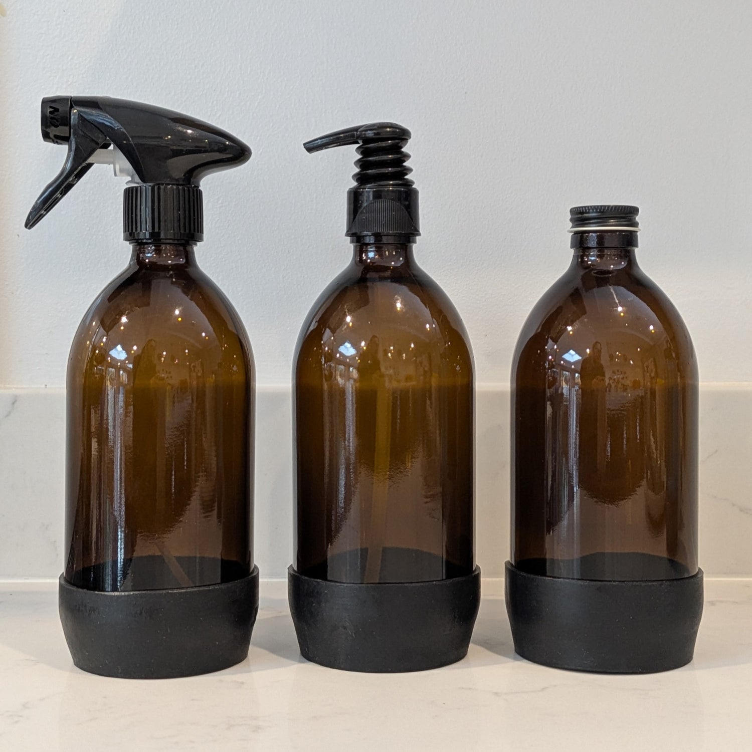 They come with a protective base made from 100% waste silicone diverted from landfill to protect it from breakages. It also protects the bottle during the doorstep refill process to keep everyone