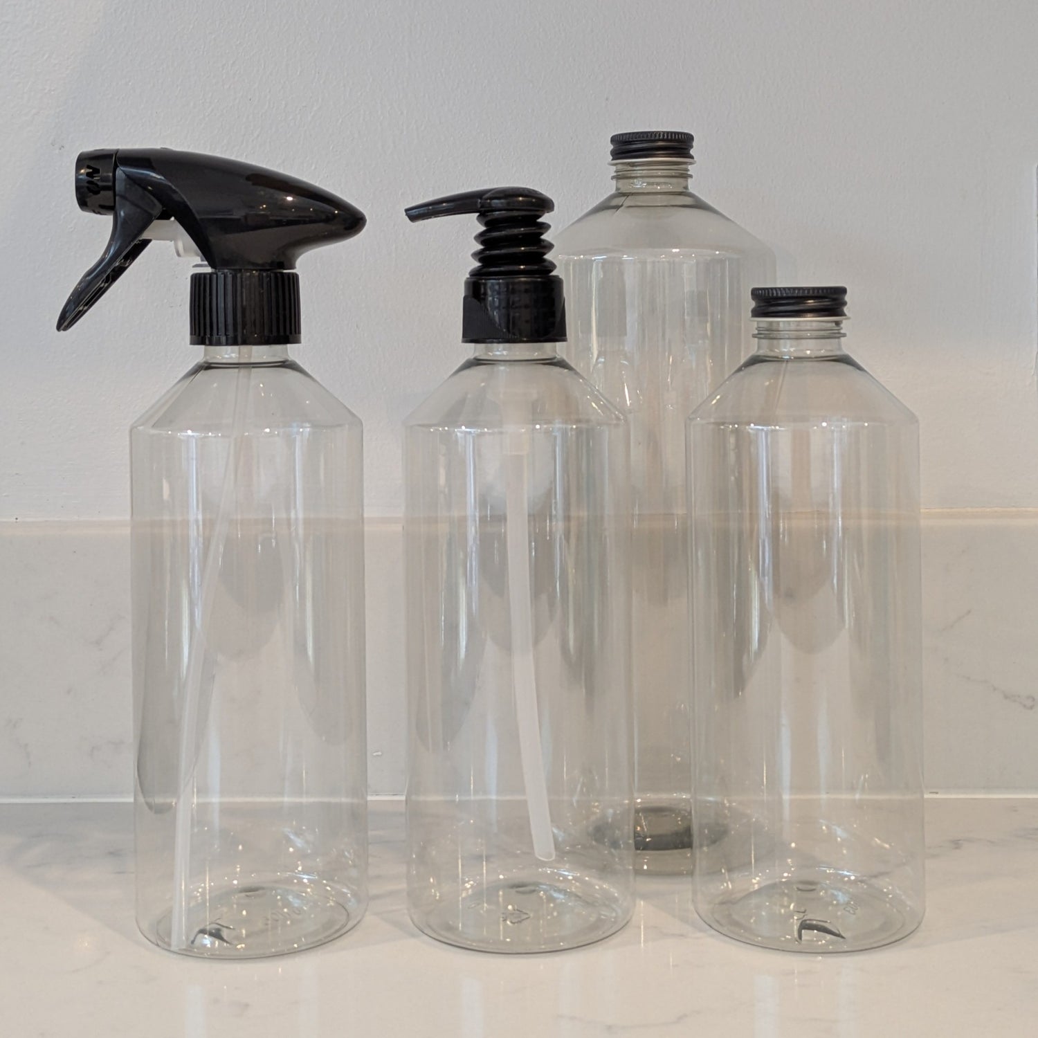 Our plastic bottles are made from 30% recycled PET (polyethylene terephthalate) sourced from waste items like water bottles and food packaging. The other 70% is virgin PET which ensures the bottles are strong and durable.